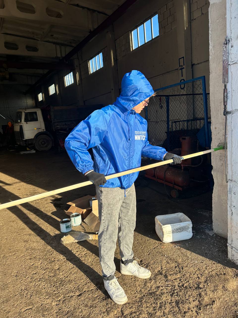 4 ноября молодежный десант трудился на машинном дворе и в механизированных мастерских отделения «Бабиничи» производственного кооператива «Ольговское». Парням и девушкам доверили обновить окраску забора «лица» мехдвора – возле главного въезда, освежить стены в помещении для ремонта.