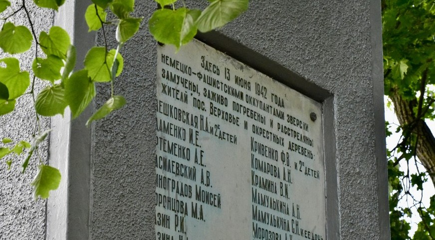 Участники автопробега возложили цветы к памятнику 75 жителям Верховья и других окрестных деревень, зверски уничтоженных карателями 13 июня 1942 года.